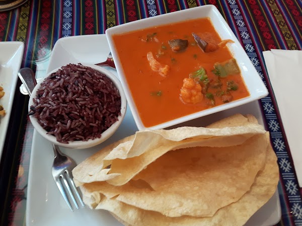 Great atmosphere. Very tasty authentic dishes (at least I thinks so ????, I've only been to Nepal) Many are vegan or vegetarian even though they are not marked that way on the menu so ask. Flavors were very unique. We started with veggie momos which come with a tasty sauce, these took me right back to the Himalayas. We also had veggie curry, thukpa, the think and shapta. All portions are large. Be sure to tell them how spicy you like your food and they'll adjust. I highly recommend this restauran whether you're a vegetarian, vegan or meat eater.