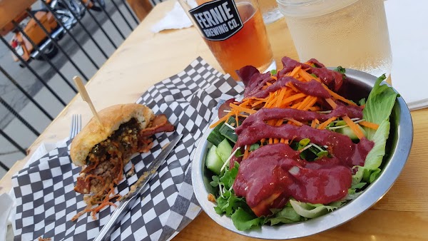 Wow, really not good. The menu is half burgers and they are sad. Processed cheese, very tiny patties. Most are $17, if you ask for side salad vs fries add $2 which gets you 4 leaves of butter lettuce some carrot and 2 cherry tomatoes. So $19 and no joke Wendy's burgers are better and bigger.. Staff and place are nice. Beer menu is good. I also had a hair in my burger but will chalk that up to them figuring things out. Food quality needs to improve in a very big way. If you only want beers, rating goess to 4-5 stars.