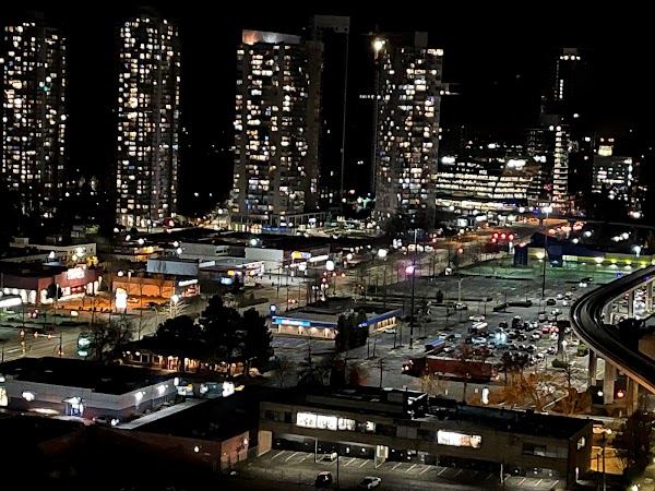 Located in Surrey BC, about 30 minutes away from Vancouver downtown. We were tourists visiting from Seattle and decided to stay at this hotel for a night. This hotel is close from the border. The hotel itself is very chic and modern. For a platinum member they offer us two breakfast vouchers. The food was mediocre, a typical American buffet brunch. The room was not too large as our room was just the standard king but it was definitely not small. The bathroom mirror was a touch screen which you can change the brightness. The 21st floor view was a plus in the morning and at night. If we revisit Vancouver, then we will definitely stay at this hotel.