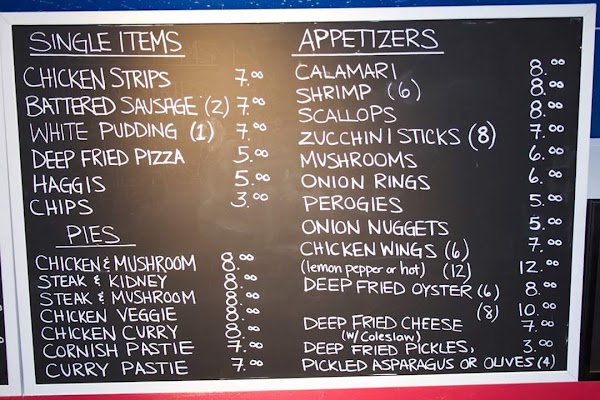 Happened upon this place after taking a wrong turn in Devon Alberta. What a delight to have found this gem. First impression clean. Plenty of parking. Great menu for the British style chip shop. Cod was perfect. Pasty was great, sausage in batter to good to miss. I would recommend this place it is worth the drive from Edmonton area. Will be back soon. Try it you will love the food. And they serve Beer, Tea and Pop.