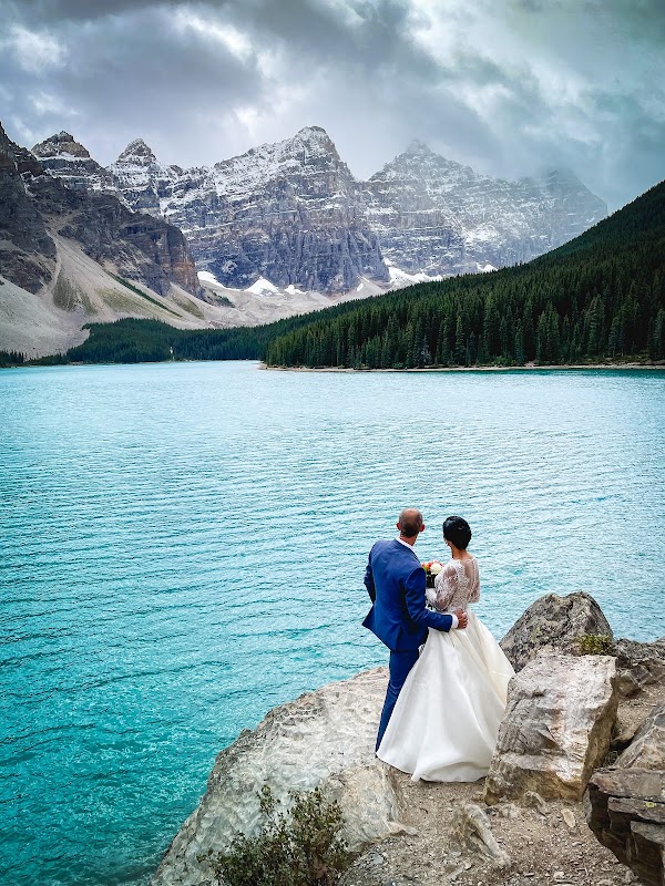 We recently eloped at Moraine Lake with Sharon and Malcom. Sharon was amazing!! She took care of everything and created a day that far exceeded my expectation. I felt prepared and beautiful, so I was able to just enjoy getting married. She added in little details, leveraging the experience to another level. The photo shoot with Malcom was also more than I could have hoped for. He fully captured our experience and more. We used there videographer, Michael, who along side Malcom, had us playing and laughing so I never felt fake or awkward in front of their lenses. Sharon supported them ensuring my hair and dress were in check and I was looking my absolute best. Honestly, I had a good cry the next day because of how overwhelming happy I was with our elopement. Thanks again ❤