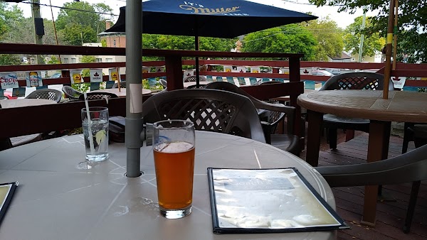Good food, lots of beer on tap, not many craft beers, but still good. There's a really nice patio out back too.
