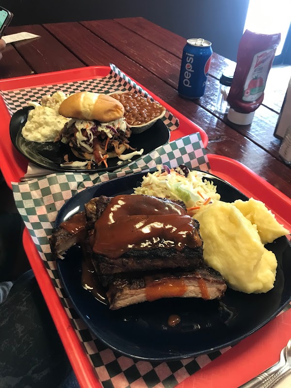 Fairly priced, ok flavour (no heat or "spice"), ribs are smoked but very tough, mac and cheese is bland, mashed potatoes are ok. Small town hyoe.